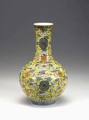 Fine Chinese famille Jaune vase blue qianlong mark, republic period