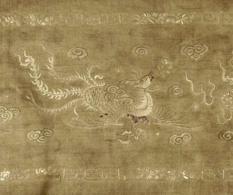 Long Chinese dragon and phoenix tapestry possibly late ming dynasty
