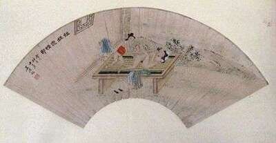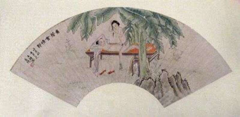 Two Chinese painted 'erotic subject' fans late qing/republic period