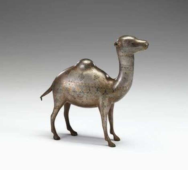 Persian gold and silver inlaid model of a camel 19th century