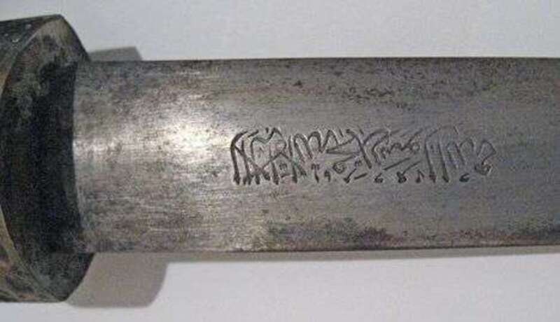 Comprised of a white metal mounted steel troughed double edge blade quaddra with white metal filagree scabbard, a gilt-copper mounted stamped quaddra, together with a mother-of-pearl and jade handle, silver worked pesh-kabz.