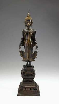 Fine Thai partially gilt bronze standing figure of Shakyamuni 18th century