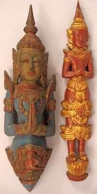 Two Thai carved wood and painted figures 18th and 20th century
