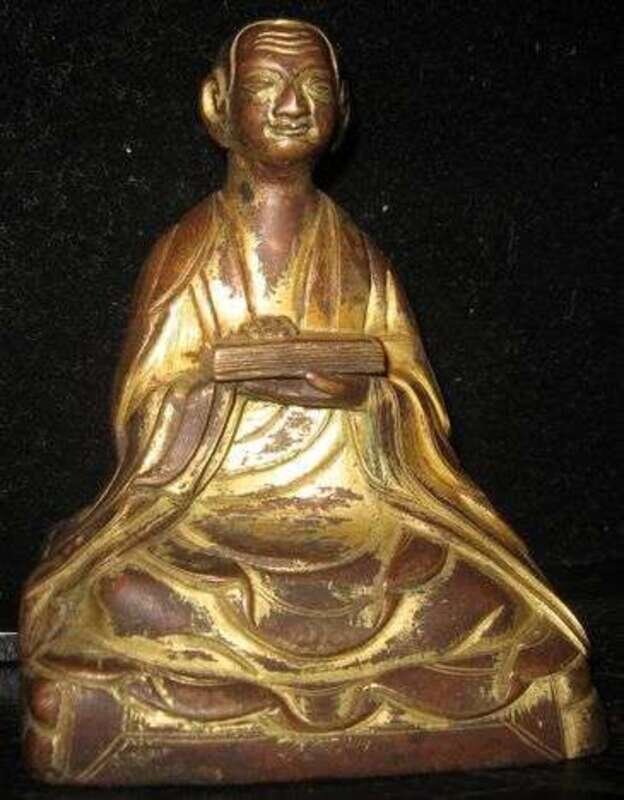 Sino-Tibetan gilt bronze figure of Arhat Gopaka 18/19th century