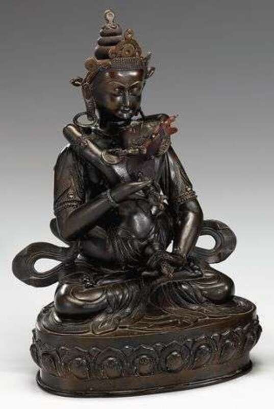Large Tibetan bronze figure of Sitsamuara in yabyum