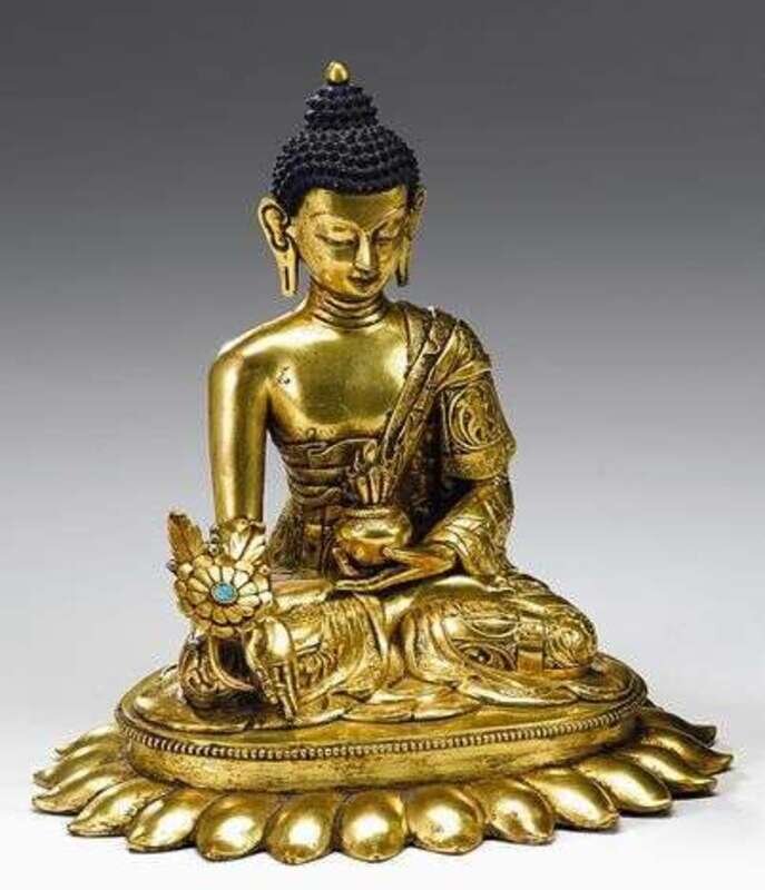 Gilt bronze Tibetan figure of Shakyamuni