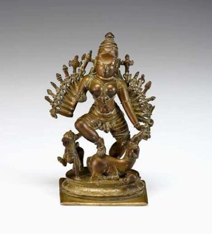 Fine Indian brass figure of Durga, Mahisasuramardini 14/15th century