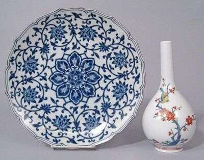 Japanese kakiemon bottle vase and ming-type charger japanese, 20th century