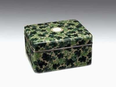 Of rectangular form, the center enameled to show an eighteen leaf white chrysanthemum worked in gold wire, framed by a profusion of oak leaves worked in silver wire over a wireless ground of light brown enamel, the interior counter enamel is of a solid and thick tan or light brown, good silver mounts, moderate loss to corner edge, together with original letter dated July 13, 1921, from the Imperial Japanese Embassy, Washington stating that ' it is my agreeable duty to inform you that the Empress of Japan has been pleased to present to you a cloisonne box with Imperial Chest of the chrysanthemum, in happy memory of your sojourn in Tokyo....among all the members of the diplomatic corps in Tokyo, non has been held in greater esteem and affection by the Japanese people than you and Mr. Morris'.