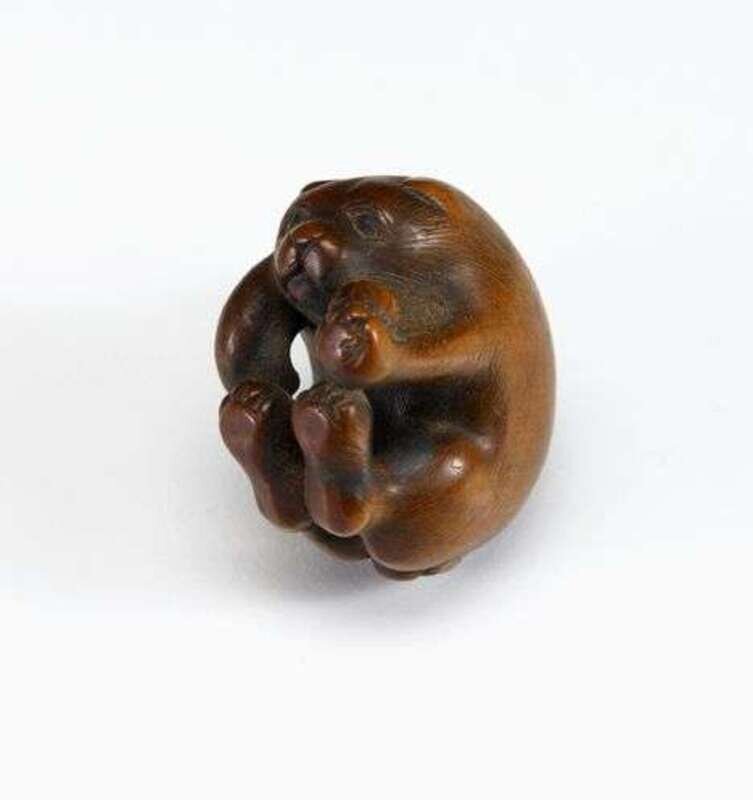 Fine Japanese boxwood okimono of a pup with ball edo period
