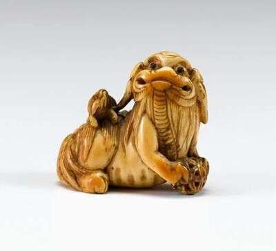 Fine Japanese Shi shi elephant ivory study early 19th century