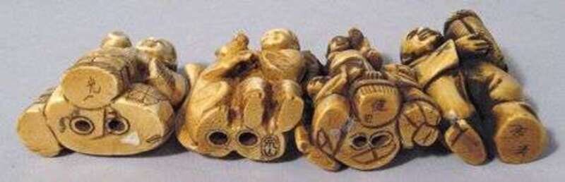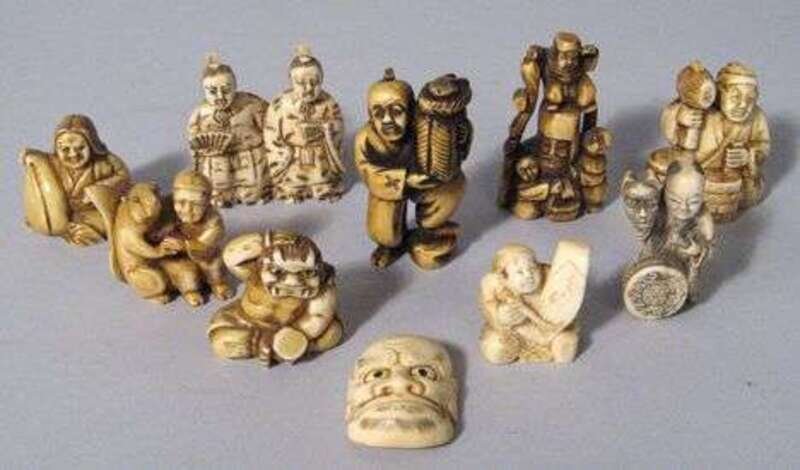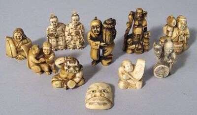 Eleven Japanese elephant ivory netsuke mostly signed,19/20th century