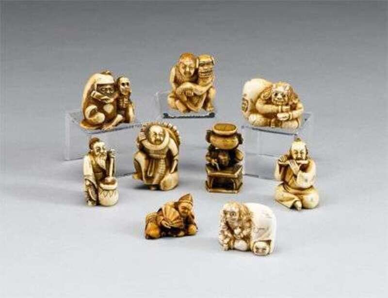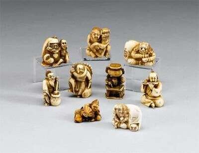 Nine Japanese elephant ivory netsuke 19/20th century