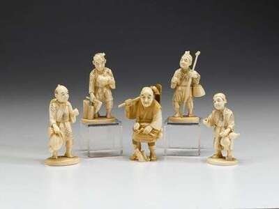 Five Japanese ivory okimono early 20th century