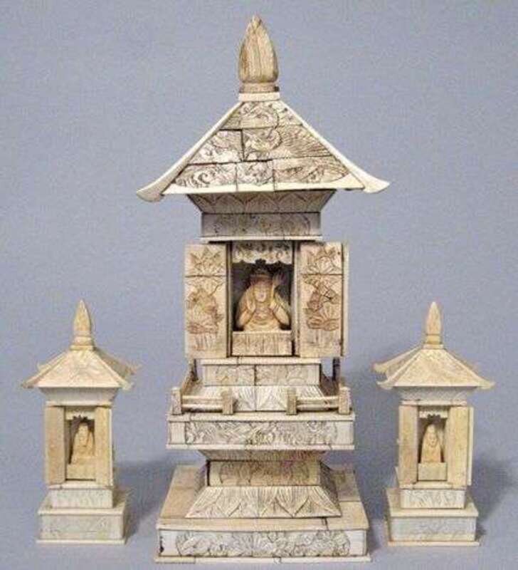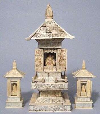 Three piece ivory shrines early 20th century