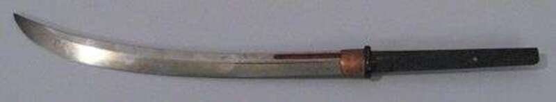 Mei; Hizen Kuni Husawara ju Minamoto Ichita, blade 38 cm hada and hamon unclear, full length pole with iron and copper mounts.