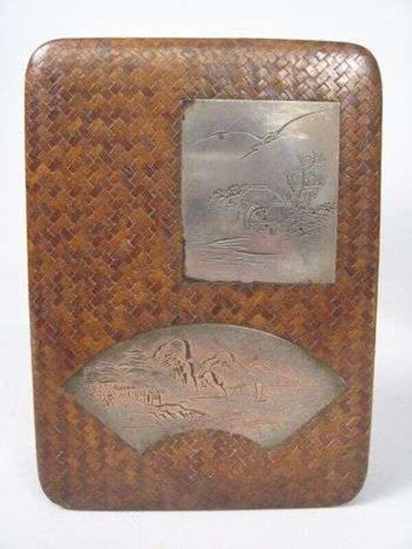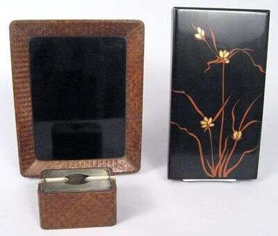 Japanese woven fiber three piece smokers companion and lacquered box
