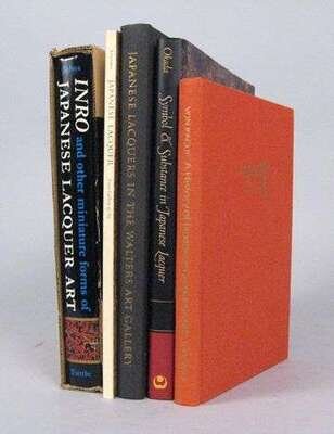 Japanese Lacquer, Ann Yonemura; Japanese lacquer-From South California Collections, Pacific Art Museum; History of Japanese Lacquer work, Beatrix Von Rague; Catalogue of Japanese Lacquer, Martha Boyer; Symbol and Substance in Japanese Lacquer, Barbra Teri Okada, & Inro and other miniature forms of Japanese lacquer Art, Melvin & Betty Jahass.