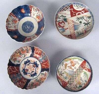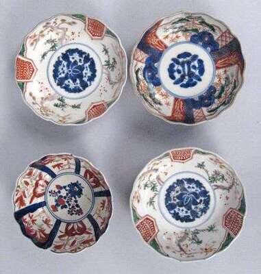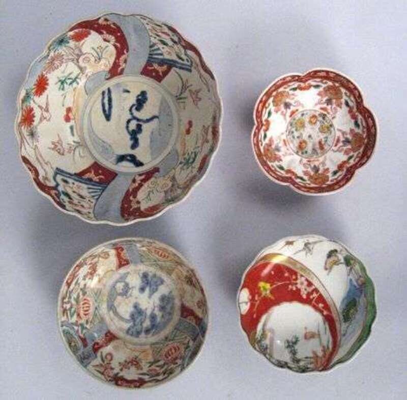 Comprised of simple U-shaped bowls and foliate form bowls all decorated in the imari palette.