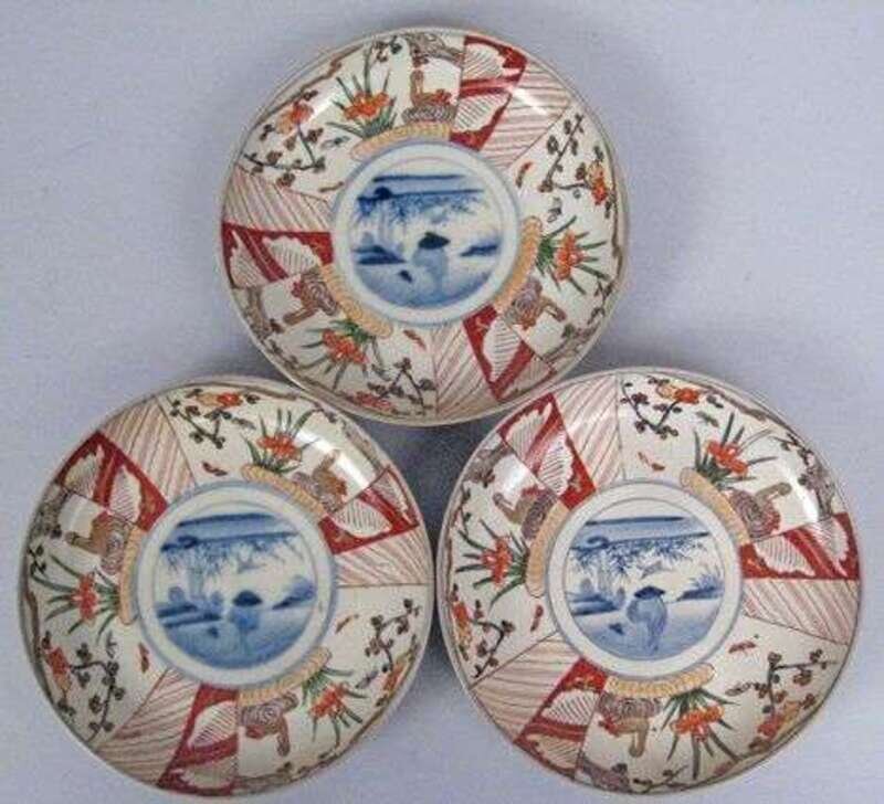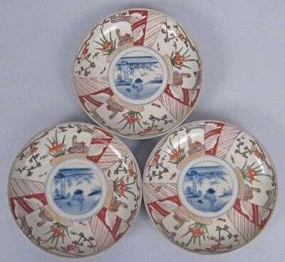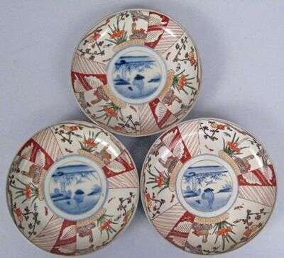 Of slightly rounded form, blue underglaze central medallion, enameled band, blue underglaze to under-side.