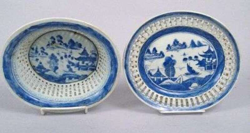 Chinese export blue and white reticulated bowl and stand canton, 19th century