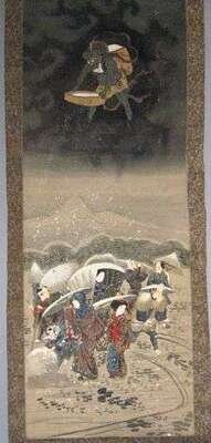 The four of gesso, wash and ink on paper depict the four various seasons, silk band.