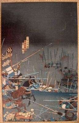 KUNITSUNA UTAGAWA (JAPANESE 1805-1868) SAMURAI BATTLE TRIPTYCH