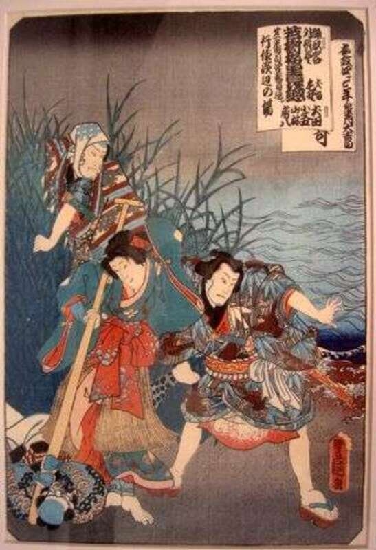 UTAGAWA KUNISADA (TOYOKUNI III) (JAPANESE 1786-1865) SAMURAI WITH BIJIN