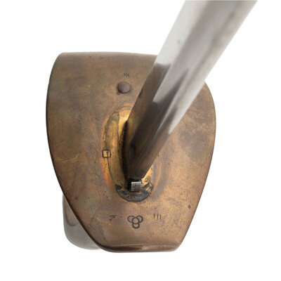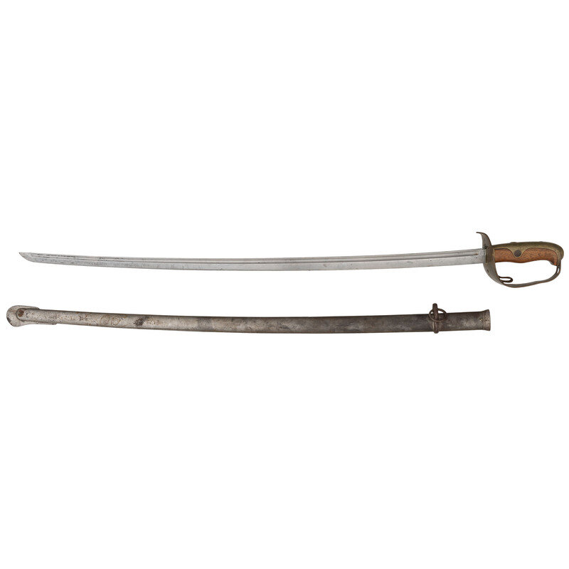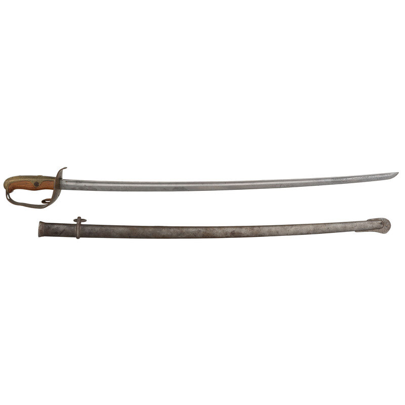 The Type 25 pattern cavalry sword was authorized for NCOs and soldiers on March 19, 1892. Combining Japanese blade geometry with European pattern furnishings, the Type 25 typified the swords designed for Imperial Japan's forces in the late 19th Century. It is suspected that the Tokyo Artillery Arsenal manufactured fewer than 17,000 Type 25 swords. In 1934, propelled by rising nationalist sensibilities, Japanese swords began to adopt more traditional forms based upon the iconic Tachi style, and displaced the European influenced blades.
