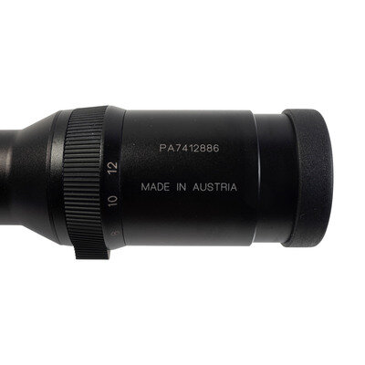 3-12x variable 50mm telescopic sight with flip up scope covers. As new in box with factory paperwork. SN: PA7412886.