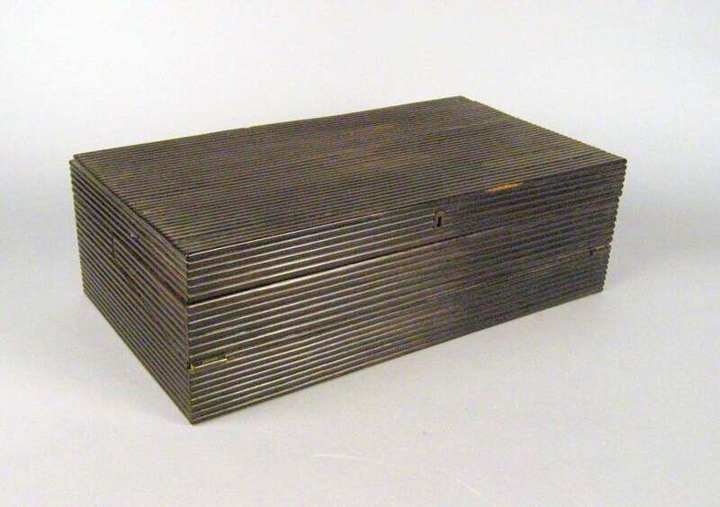 The reeded rectangular top opening to an interior fitted for writing with a hinged baize inset writing slope.