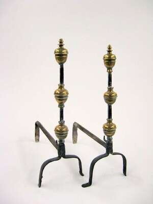 Pair of English iron and brass andirons 18th/19th century