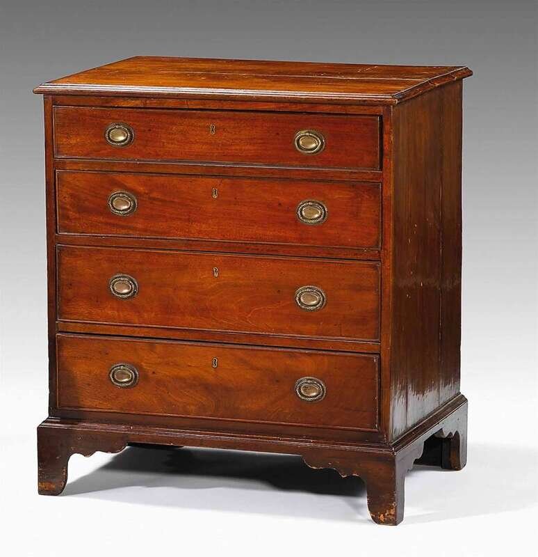 The rectangular top above four long graduated drawers, raised on bracket feet.
