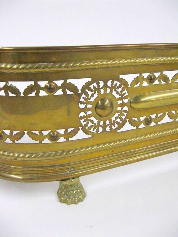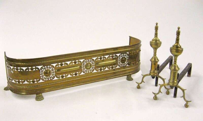 Together with a brass fire fender with pierced decoration raised on paw feet. (3).