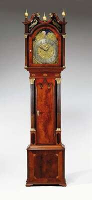 English gilt-bronze mounted mahogany and marquetry tall case clock