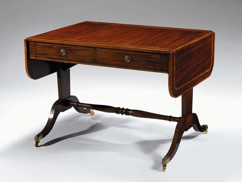 Regency style mahogany walnut and satinwood banded sofa table
