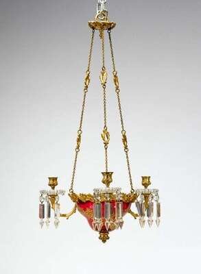 Victorian gilt bronze and gilt decorated cranberry and clear glass chandelier