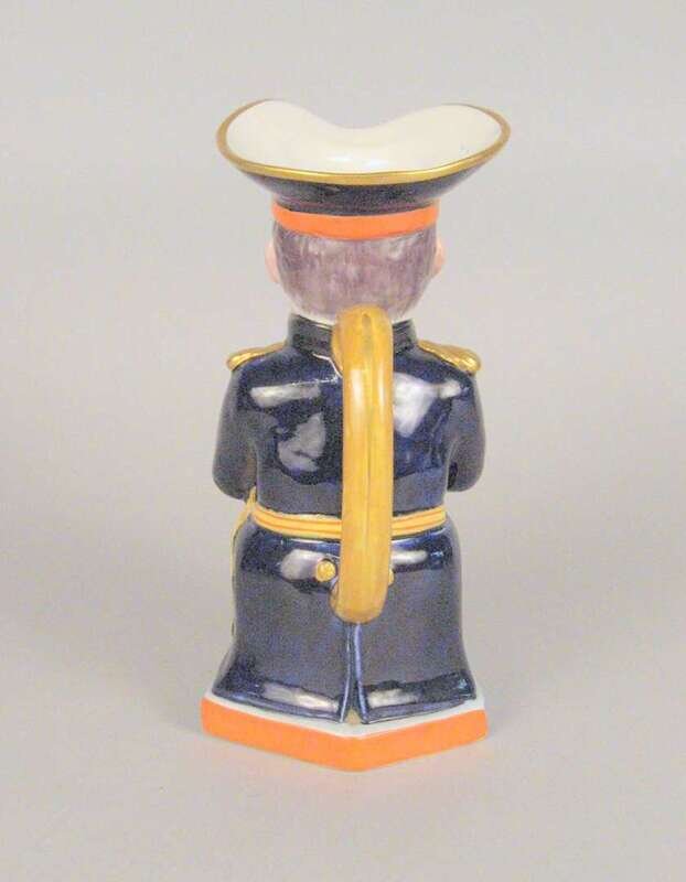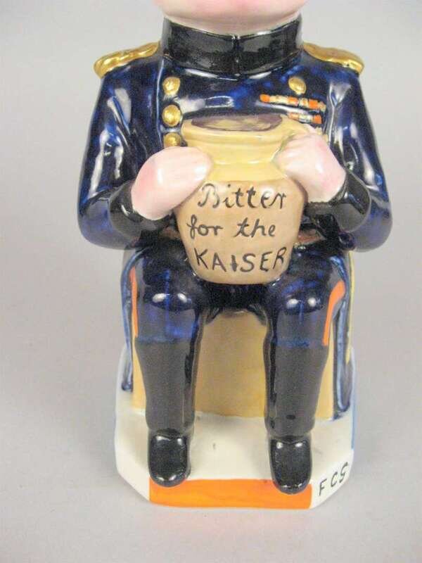 The seated officer holding a jug inscribed 'Bitter for the Kaiser', printed marks to underside, retailed by Soane & Smith, Ltd. London.