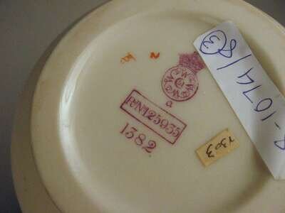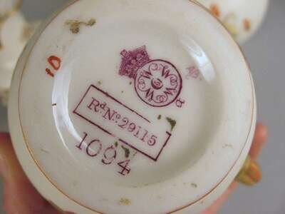 Each of globular form with reeded handles decorated with floral sprays on an ivory ground, printed, painted and impressed marks. (3).