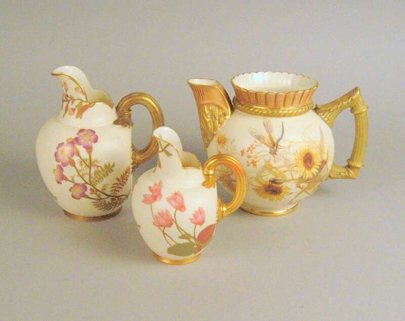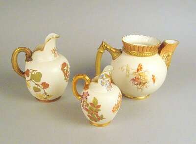 Group of three Royal Worcester porcelain gilt decorated jugs