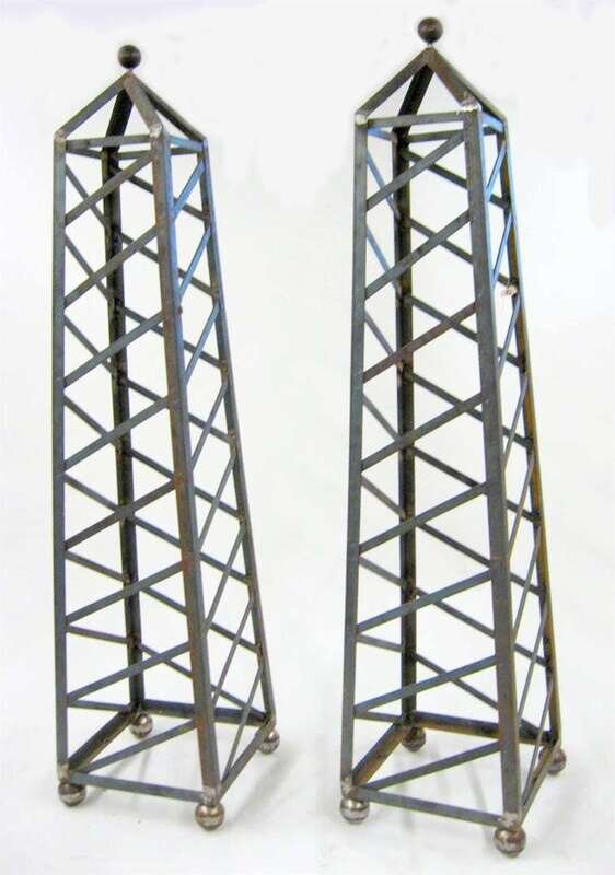 Pair of large iron obelisk topiary forms
