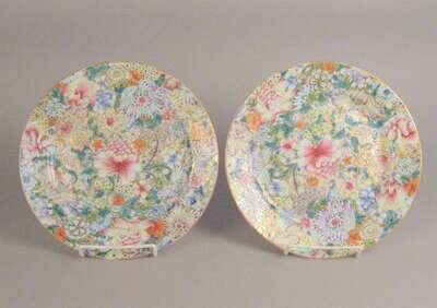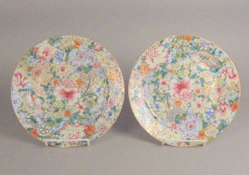 Pair of Chinese export porcelain 'Mille fleurs' pattern plates late 19th century