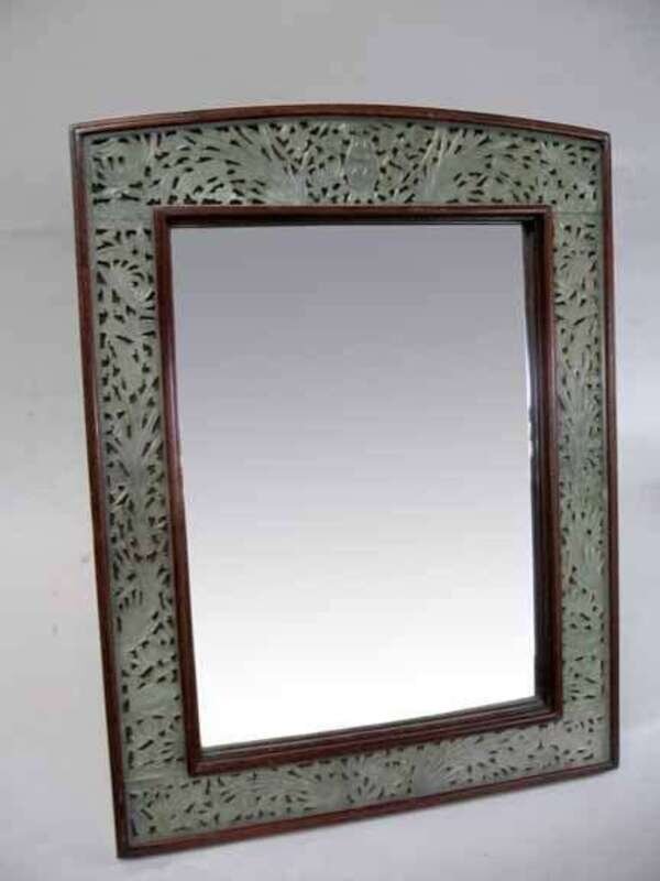 Chinese hardwood and jade mirror 19th/20th century