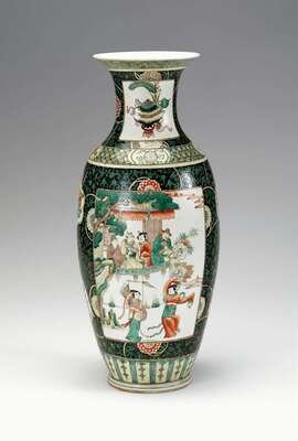 Pair of Chinese export 'famille noir' baluster vases late 19th/ early 20th century