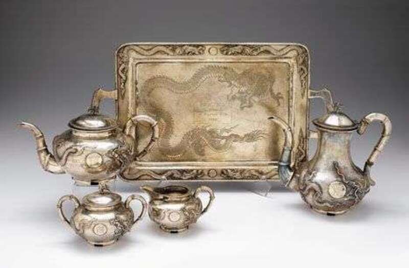 Chinese export five piece silver tea & coffee service cj & co, second quarter 20th century