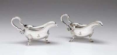 Pair of George III sterling silver sauce boats probably george methune, london, 1759-1760