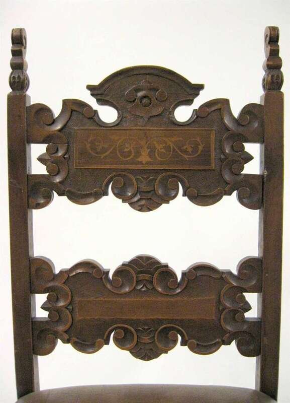Set of eight Italian Renaissance style walnut inlaid side chairs