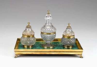 George III sterling silver gilt, malachite and cut glass standish william reynolds, london, 1803