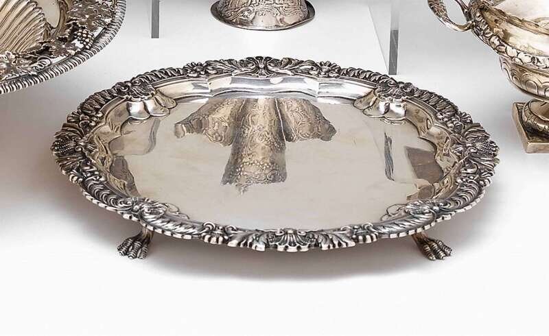 English sterling silver footed salver james dixon & sons, sheffield, 1905
