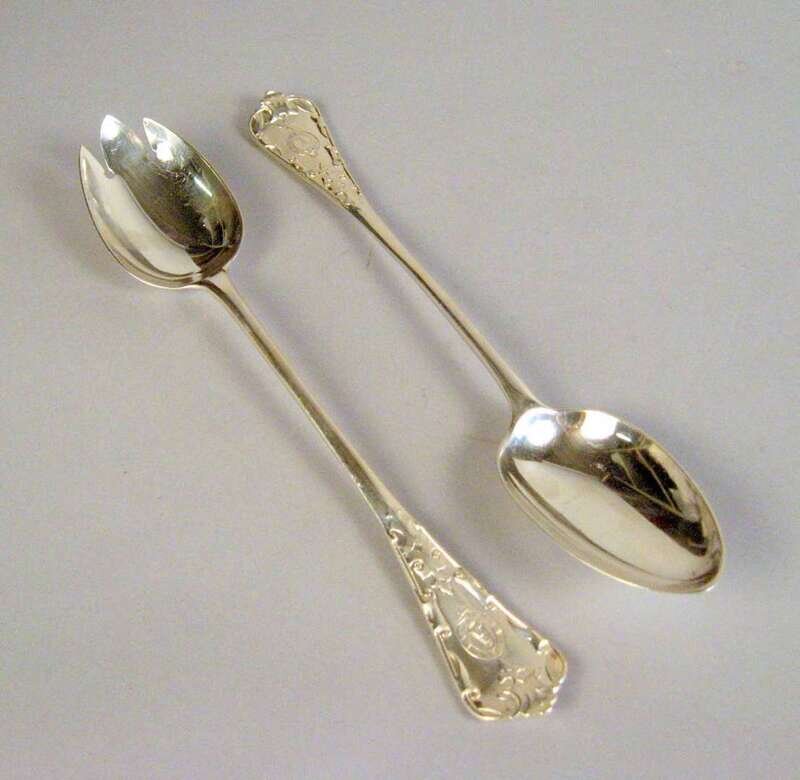 Pair of Victorian sterling silver stuffing spoons george william adams, london, 1851